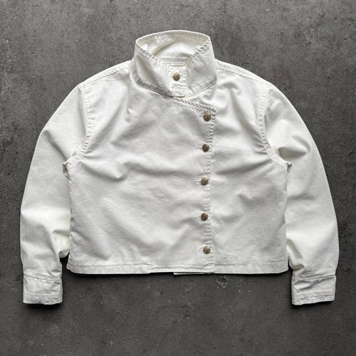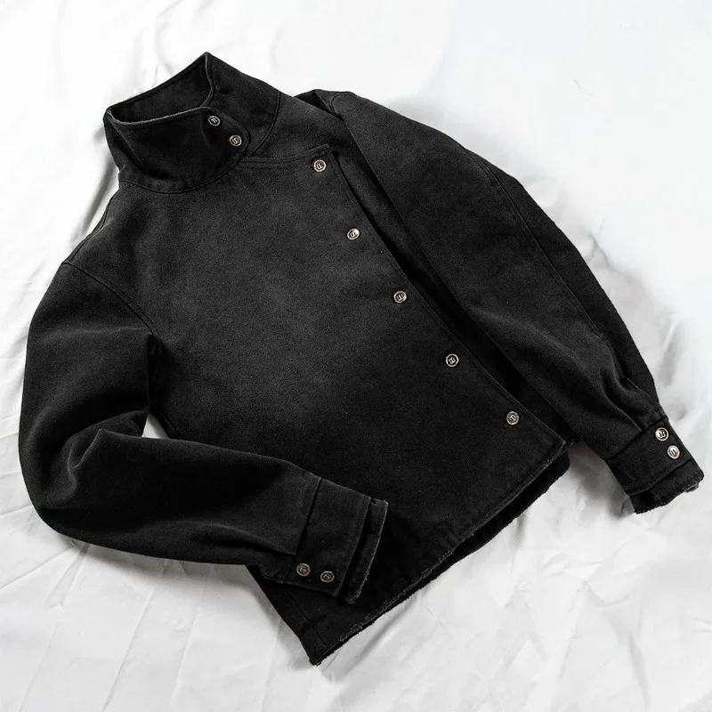 A masterclass in Japanese-inspired minimalism. This jacket reimagines classic fencing silhouettes through a Y2K retro lens. Crafted from 10oz raw cotton, it possesses a crisp, dry hand-feel that evolves with the wearer, softening into a custom fit over time. Precision-tailored with a cropped profile, it’s a versatile statement piece built for all-season wear.